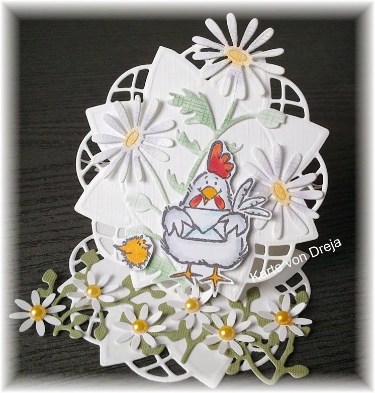 Ich habe mich für eine Mini-Easelcard entschieden und das süße Hühnchen von Penny Black darauf platziert.